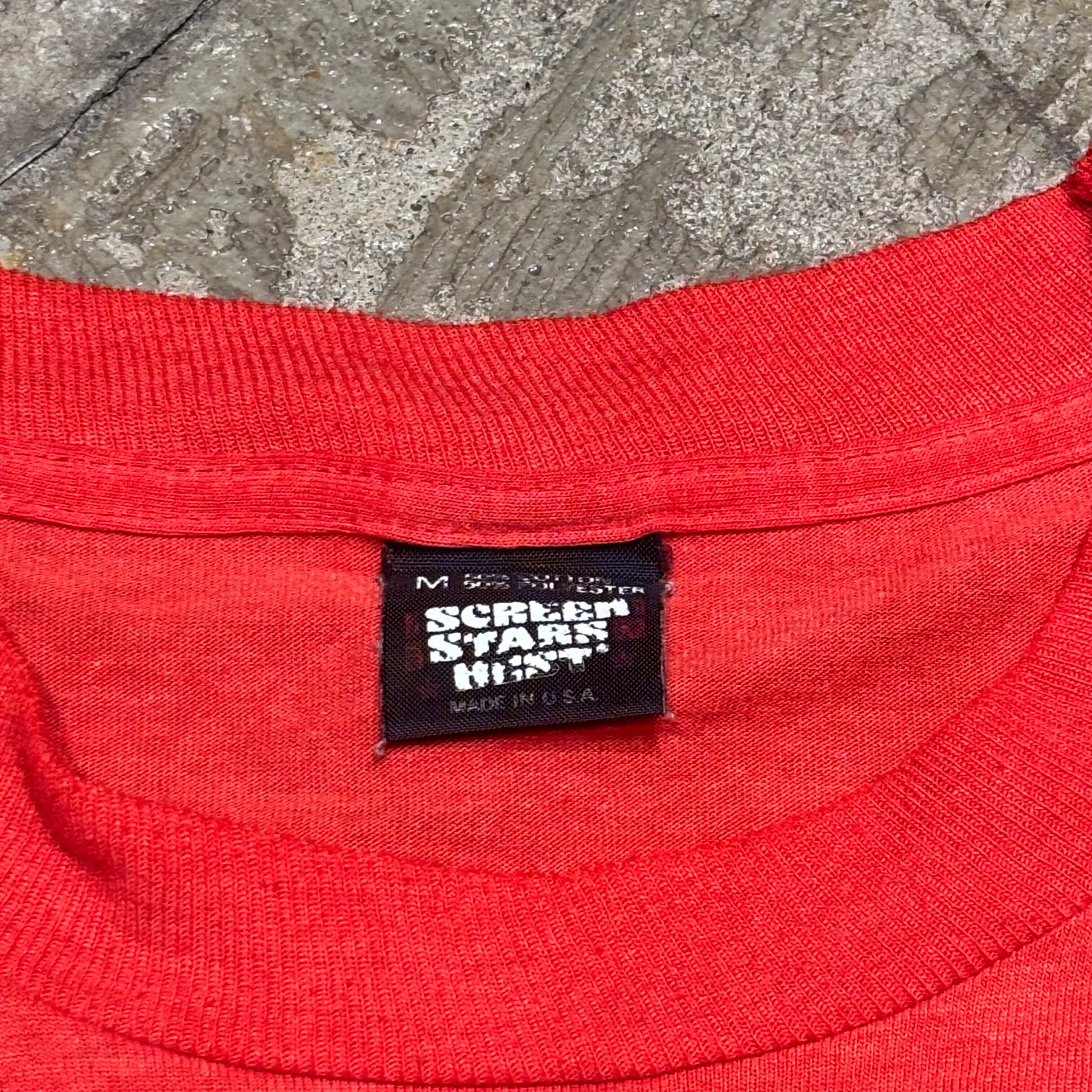 商品説明:80年代のおそらくアメリカの学校Tシャツです。立体的なフォントやロゴなどデザインだけでもかなりこだわられています。