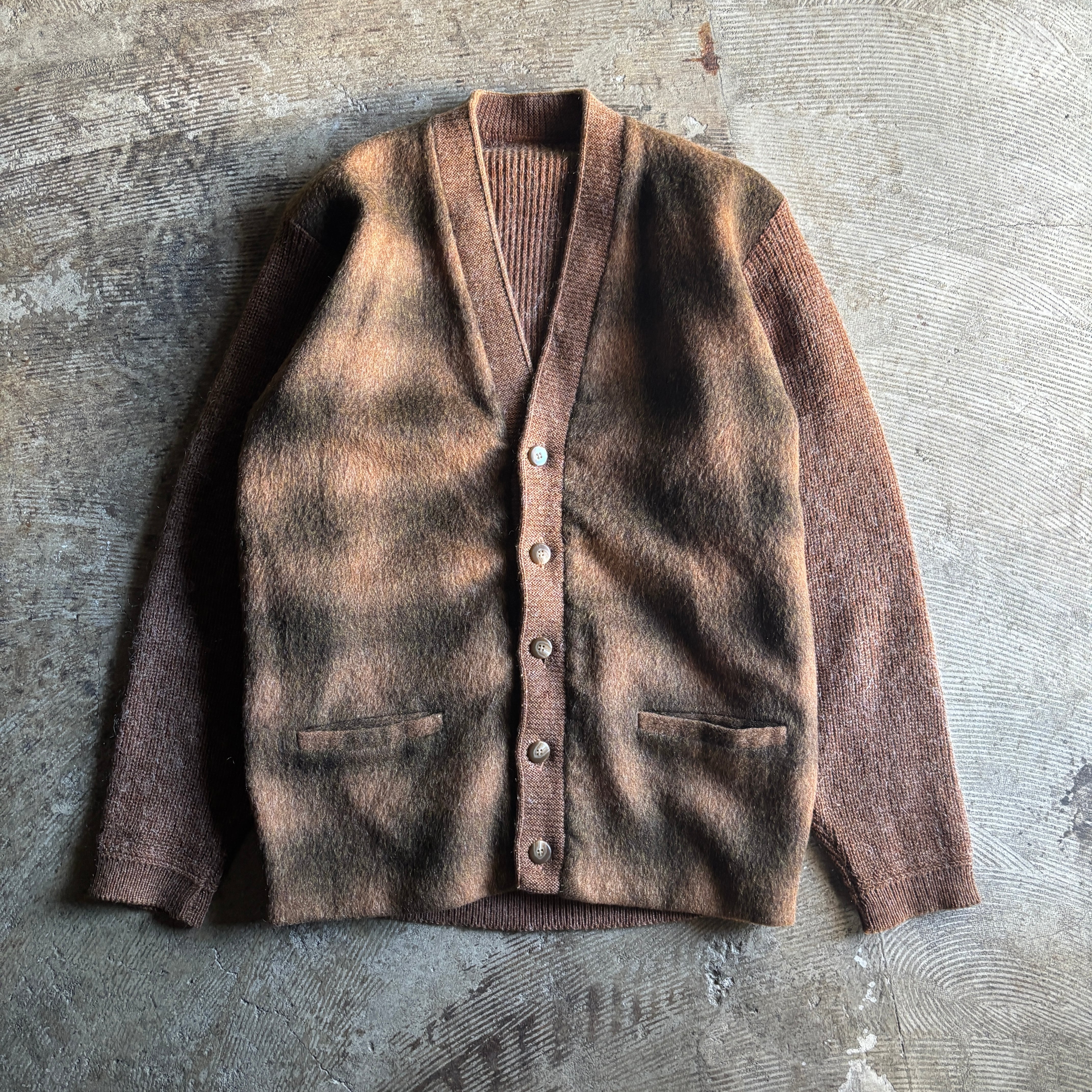 商品説明:ヴィンテージモヘアカーディガン。グラデーションカラーがかっこいい1着です。